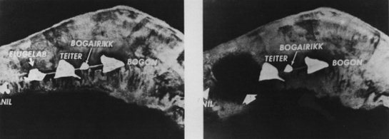 These black and white aerial photos of the coral reef making up the northern end of the atoll have white overlays indicating the position of islands, and show the "before" and "after" position of Elugelab. It also damaged one other island. When I was flown over the area by one of the L-13 liaison pilots there on Eniwetok, to say I was impressed would be a gross understatement.