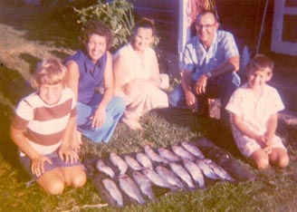 Rainbow trout taken from Bull Shoals lake in early 1970. The boys like to brag, but in truth, Mom caught nearly all of them. From the left, Larry, Pat, Mom, myself, and Jim.