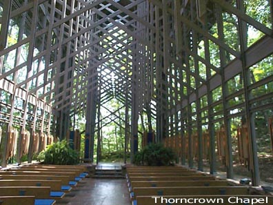 Thanks to Becky Miller for The Poem. Photo is Thorncrown Chapel near Eureka Springs, Ark, taken June 2001. |