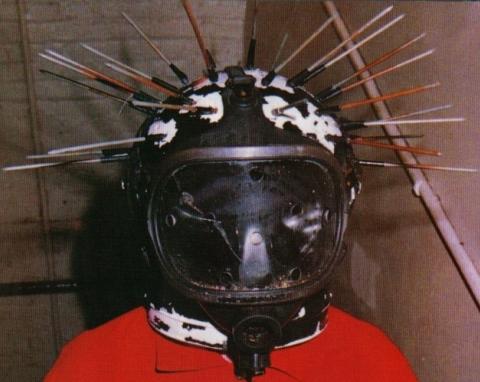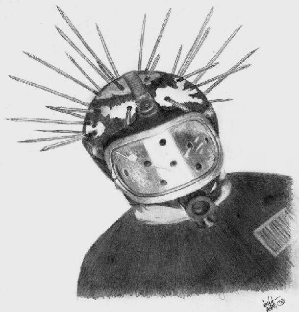 - El casco lo encontró en una estación de gas...se lo regalaron y le agregó púas.