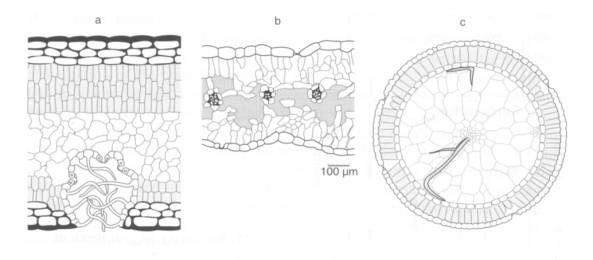 deserto do Norte de Africa, com clorênquima externo (a cinzento) que rodeia um