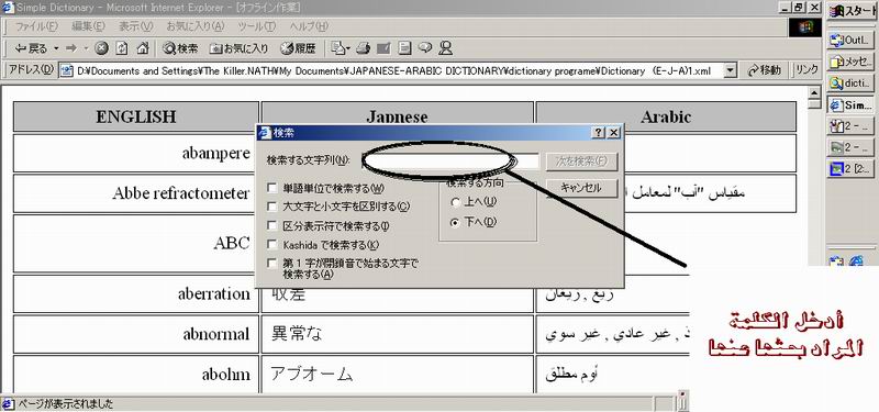 إفتح الملف Dictionary (E-J-A)1 بالنقر على زر الفارة الايسر مرتين .
