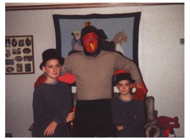 During the Thanksgiving season of 2000, my boys' Sunday School teacher asked if they could get me to help them make a Thanksgiving movie. I immediately came up with the idea to do a film with a big Turkey being chased by Pilgrims.