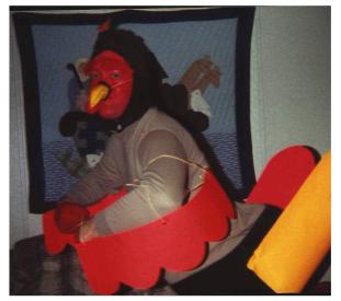 I came up with the name Tom Turkey. I found a crazy looking bird beak. I put together a tail, wings and feet for my turkey. I chose the song "Turkey in the Straw" for this film.