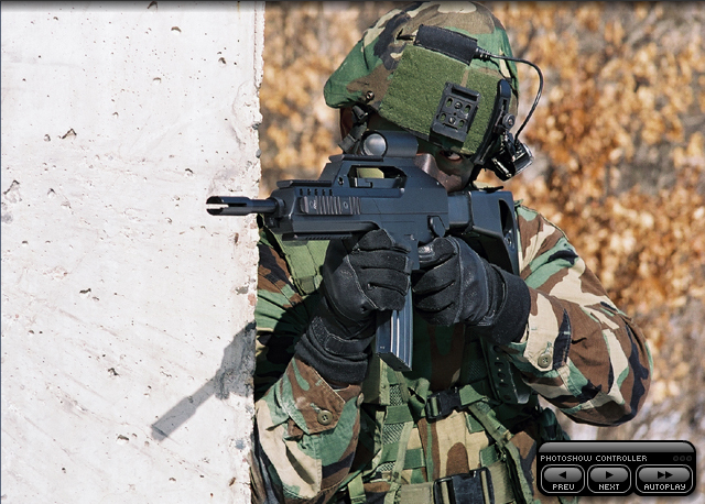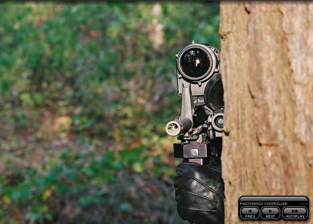 8. Yet another soldier at Fort Benning uses his rifle to look around a corner.