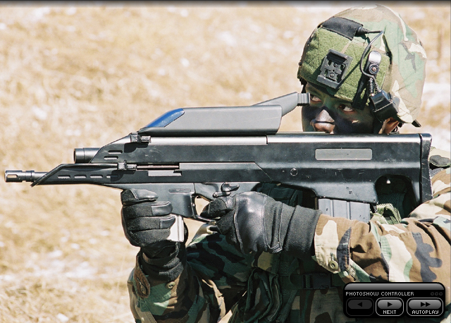 16. An up-close look at the XM29. The weapon can fire both 5.56mm kinetic rounds and distance-programmable 20mm rounds in several configurations.