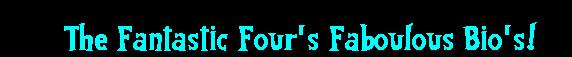 What's the matter with you? Huh? You dense or something? I guess your Momma was right! You can't actually read comic books so you buy 'em for the pictures! Oh well, we'll get you fixed up. Read these Bio's of the Fantastic ! Your Host, -The G Fantastic Bio's: Reed Richards(Mister Fantastic) Sue Richards(Invisible Woman)Ben Grimm(The Ever Lovin' Thing)Johnny Storm(The Human Torch)