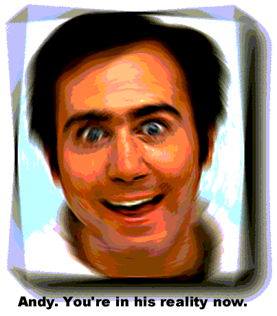 I am not associated with Andy Kaufman or anyone who knows Andy Kaufman in any way, shape, or form. I'm just a die-hard fan with too much time on her hands. I am not making any profit from this site whatsoever and all material contained within is meant as an expression of love to Andy from whoever/whatever produced said material. We are intending in no way to offend or insult Mr. Kaufman or anyone associated with him. If I'm doing something that violates any copyright laws or anything of the sort please e-mail me and let me know before you sue me, okay? okay!
