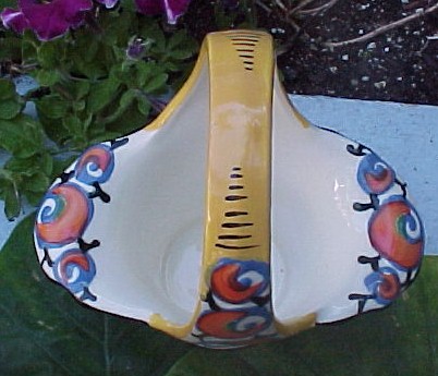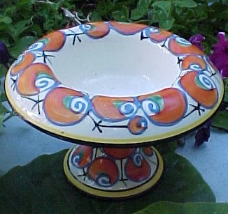 #8E Czech Art Deco Pottery Rare Footed Console Bowl, slip design--$175.00----