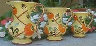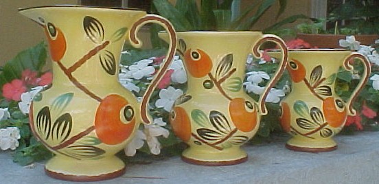 #2B- Czech Art Deco Ditmar Urbach LOSTRO pitcher set. The pitchers are in the 1 liter, 3/4 liter , and 1/2 liter sizes--$325.00--