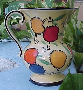 #2D- Czech Art Deco Pottery Pitcher in the rare 3/4 liter size--$65.00