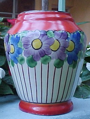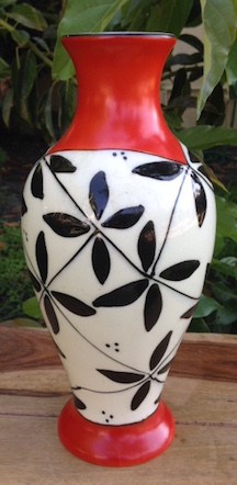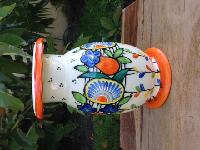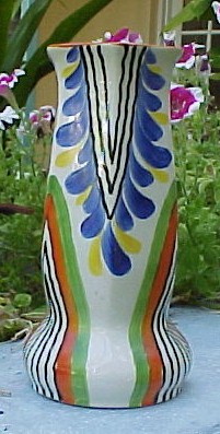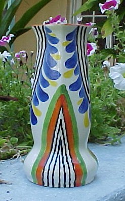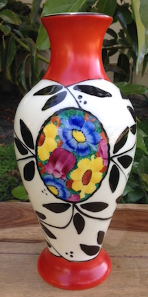 #2F --Huge Czech Art Deco Pottery Vase, made by Ditmar Urbach in a fantastic hand-painted slip design 12"---$195.00--