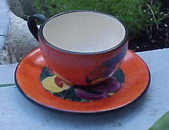 #XX13- Czech Art Deco Mrazek Cup and Saucer in the Orange "A" pattern 1921-1933-----$10.00----