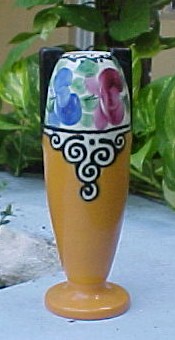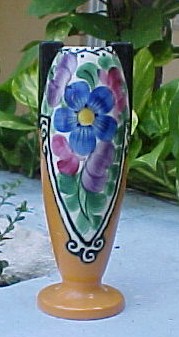 #7A- Czech Art Deco Pottery Vase, never seen hand-painted pattern --$45.00--