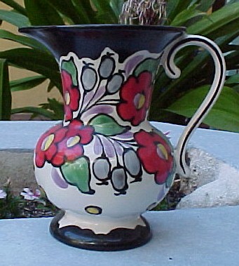 #7B- Czech Art Deco Pottery Spritzdecor Airbrushed 1 1/2 Liter Pitcher hand-painted in an Aztec Indian pattern--$75.00--
