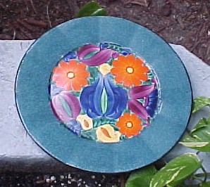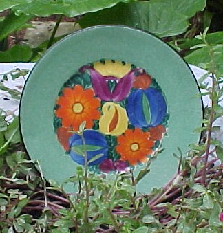 P2A Mrazek Peasant Plate on green background just over 8"--$40.00