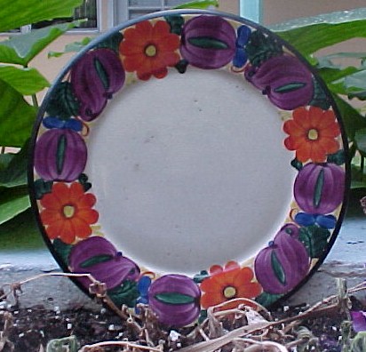 P2T Mrazek Peasant Art Industry "Q" patterned Plate. The Plate is just over 8 with slight ware"--$40.00--