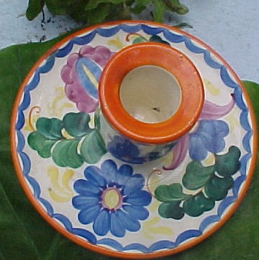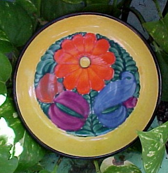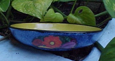 3PI Letovice peasant two sided dish yellow and blue--$35.00