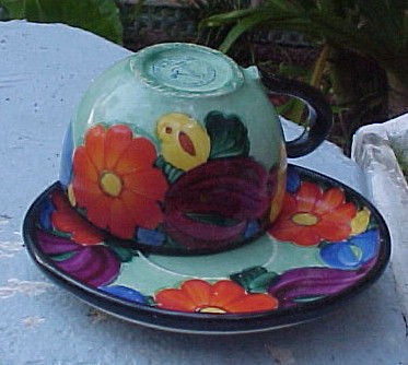 3PH Green Mrazek cup and saucer in the fruit and flowers pattern---$35.00--