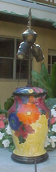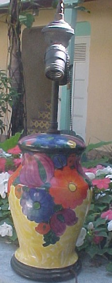 3PB HUGE Mrazek Peasant Lamp!!! This fantastic Large Lamp is 21" in height to the finial, 10" in height of just the pottery. The width of the Lamp is just over 6". The mold number of this Lamp is 634 in the "C" pattern. The lamp is marked Mrazek Peasant Art Industry stamped into the bottom---$275.00----