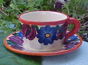 3PK Peasant Art Industry Cup and Saucer cream with the blue flower--$35.00--