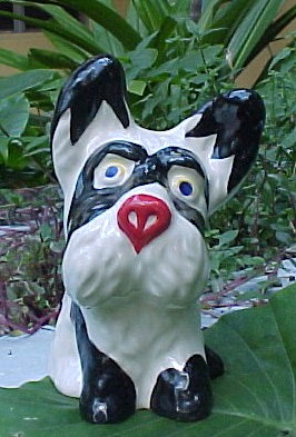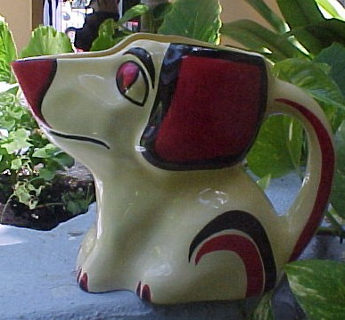 #3B- Czech Art Deco Pottery Dog Pitcher , the most excellent condition, no paint loss or fading no chips cracks hairlines wonderful!!!------------