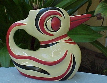 #3J- Rare Ditmar Urbach Art Deco Hand-painted Czech Pottery Duck Pitcher------