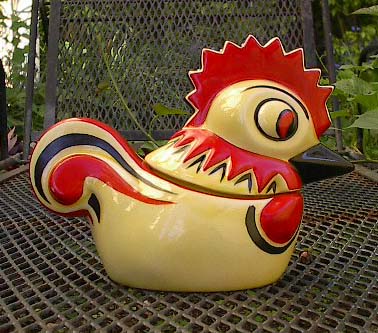 #3R-EXTREMELY RARE and desired Ditmar Urbach Art Deco Hand-painted Czech Chicken covered Jar------SOLD------