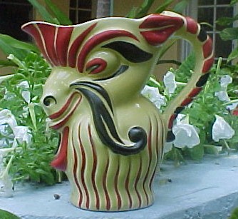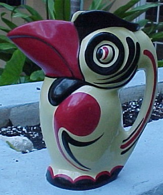#3Z5- Ditmar Urbach Art Deco Hand-Painted Parrot Pitcher in an extremely rare multi color pattern------