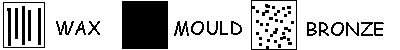 Mould chipped away when bronze solidified. Statue then burnished |