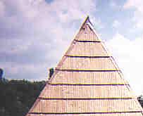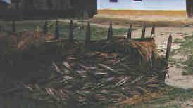 thatched-roof house, above. The straw used for thatch has a natural coating that