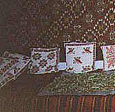 pillows and cloths used for decoration, including the "butterflies" on the wall.