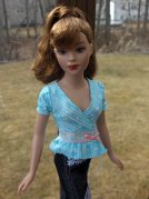 Photos of Tiny Kitty Collier ™ modeling Barbie™ fashions.