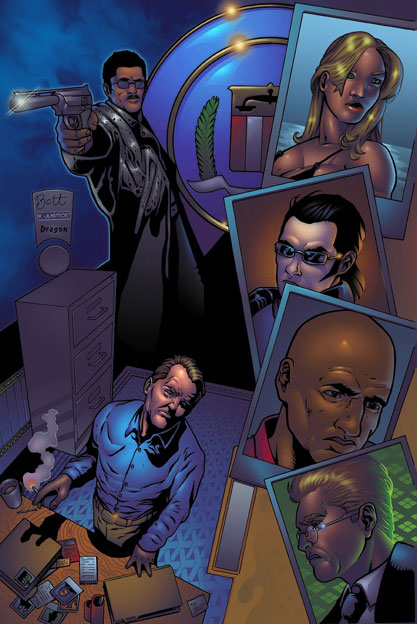 This was to be the cover to issue two of Government Bodies (www.acrossthepondcomics.com). At the last minute the editors decided they did not want it. Both GB's penciler, Jimmy Bott and I were upset about the desicion (as he loved the way it came out). But, these things happen. And no time lost for me. As I now have another piece for my portfolio. No hard feelings (smile).