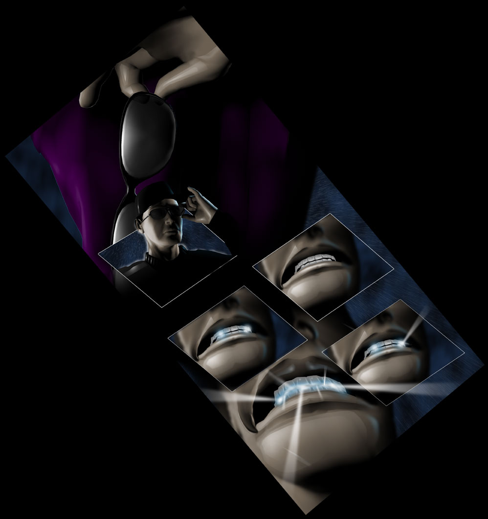 This was one of the faster pages to put together. The glasses were a prop I found on the net. Again, 3D with 2D digital painting.