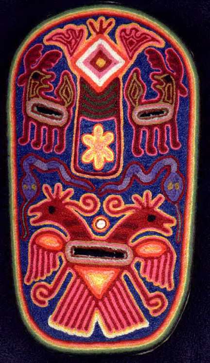 Huichol masks are made the same way as the yarn