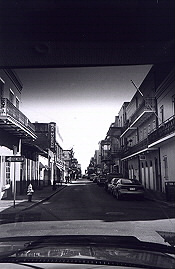 Windshield view of the French Quarter.