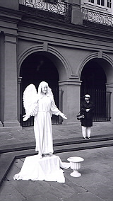 An angel that comes to life when money is tossed into the urn.