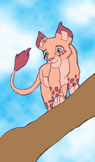 Lion Cub This has a cheesey background. I used the cloud filter so shoot me. Maybe I should go back and add some bark.