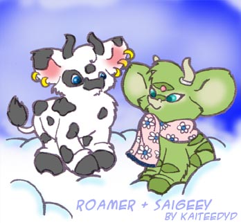 Saigeey I am SUCH a nerd. I intend on writing a childrens story about a purple cow. Its basically just an excuse to draw baby cows. The main character's name is going to be Saigeey.