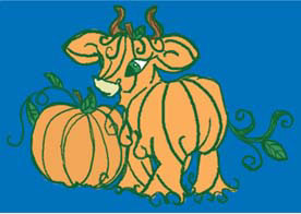 Pumpkin Cow I love cows. Baby cows have some of the prettiest animal faces. They have really sad eyes and long eyelashes. But man they smell. Its a wonder I dont feel bad about eating steak.