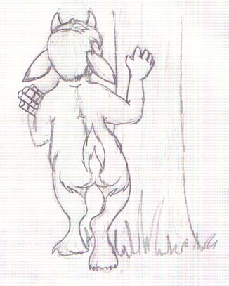 Fuzzy Bum Its a little saytr kid peeping behind a tree. Pencil sketchbook image.