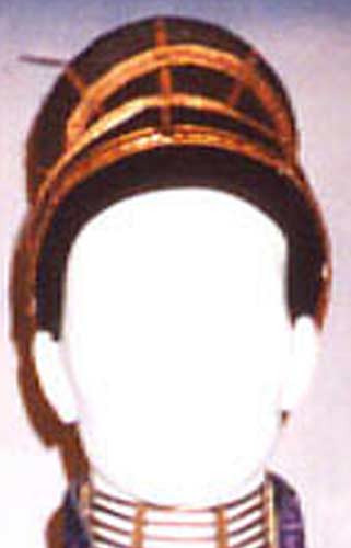 The outer part of the metal headdress used in the movie appears to be made from pattern wire strips (the decorative details on the metal can be seen in some photos). Unfortunately, the 1/2 inch copper pattern wire I found was much too thick a gauge (14) to use and would make the head dress too heavy (not to mention it's almost impossible to shape). The 1/4" pattern wire I found was thin enough and light weight to use for the vertical strips - but I've decided to use plain yellow brass strips instead. I think the real head dress looks like it's made from gold or red brass (which imitates the look of gold) Regular yellow brass seems too yellow, and copper is a little too red. It's also a possibility that the real headdress isn't covered with metal, but with plastic strips painted to look like metal.
