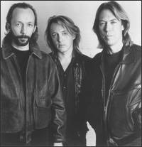 Fire Town began as a collaborative songwriting venture between Doug and Phil Davis, a Madison journalist/music writer. Butch was called upon to drum, of course, and the subsequent recordings were just too good to not release. In The Heart Of The Heart Country was recorded at Smart Studio and released on Boat records. After receiving much good press and some airplay, the band was signed to Atlantic records and their album was re-released in basically identical form on that label. After years of dues paying, Erikson and Vig finally got a record out on a Major Label. Ironically, they had to record it themselves and release it independently on their own label before attracting enough attention to achieve that goal.Photo: Doug, Butch and Phil. Spooner went on 'hiatus' as Fire Town started gigging... A second album, The Good Life was recorded for Atlantic, and released on vinyl and CD. (ITHOTHC was never released on CD.) After this fine effort failed to sell millions, the band was unceremoniously dropped by the big time Music Industry Geniuses at Atlantic, who were too busy promoting I-don't-even-know-what to support another collection of not-quite-fashionable-enough rock music from these guys... The Return of Spooner Phase Two Reconvening at the ever evolving Smart Studio, Spooner recorded what would be their final album, The Fugitive Dance. This was released on Dali/Chameleon CD's, which also released a 2 for 1 CD of the band's first two LP's. Now You Know the Rest of the Story For the completist, additional Spooner recordings can be found on some local Various Artist albums. The Beat Of The City - Live and Mad Scene LP's contain Spooner performances you won't find elsewhere. A very cool Erikson original, "Saddest Time Of The Year" appears on the Yuletunes Christmas CD put out by Shoes' Black Vinyl Records. Live versions of two songs from Fire Town's debut appear on the Beat Of The City - Live II CD. One of them, "Carry The Torch", was used as a b-side for the single of the The Good Life's title track. Finally, the Not For Geeks Volume II cassette, put together to promote Smart Studio, has a Fire Town or Spooner song on it (I forget which) as well as a rarity by the elusive "Rectal Drip"! I recommend Dave Benton's Mad City Music Exchange as a source for old Spooner and Fire Town vinyls and CD's in case you can't find what you need on eBay! |