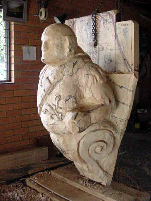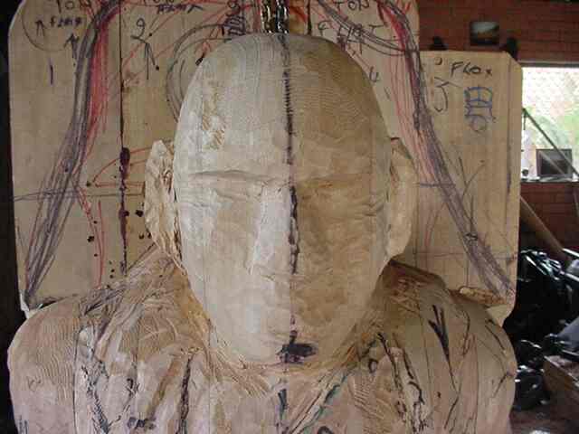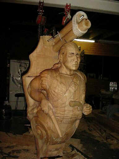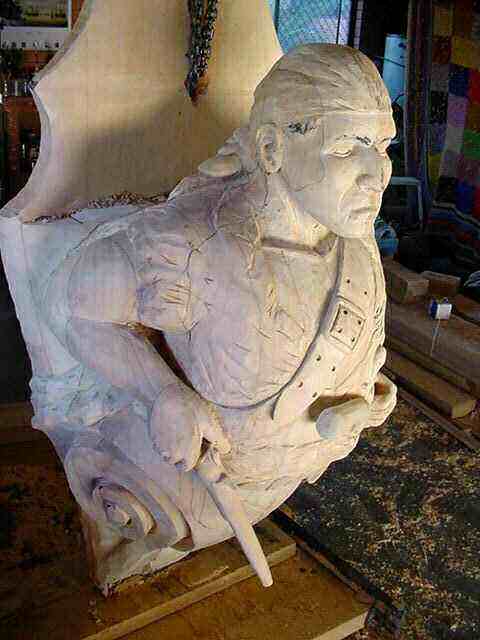 the process of carving this nearly full-size Pirate figurehead.