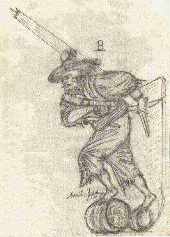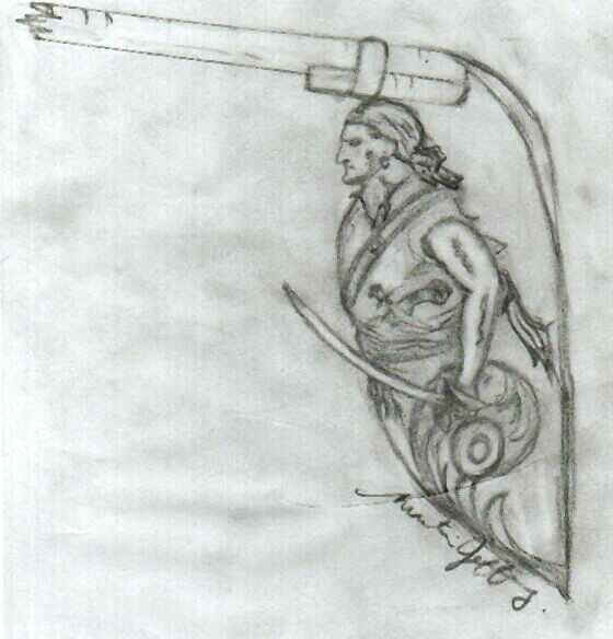 is a sketch I did (left) for the pirate figurehead. I submitted a