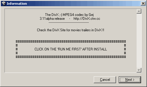 alpha version for windows - other versions may vary. Install DivX by double clicking the DivX_311alpha.exe.