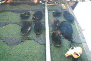 The man turns out to be Jacob the fur trapper. He invites us into his home. It is quite modern and extremely tidy. The furs draped over the back of his couch are beautiful beyond compare. He brings out albums of pictures. Some show his driveway filled with rows of dead animals. Racoon, red fox, coyote, and some I don’t even know, stacked. A day’s bounty. He has limits and a special license. He takes us out to an outbuilding. This is where the blood and guts fly, although there is no trace of either. He shows us a machine and explains how the feet are clamped in and the body is uprighted and the skin peeled off in one swoop. I kind of finish what he is saying because he is a bit shy to say the skinned part. All of the finished furs are shipped to Alaska. There they are tagged and put into lots. The individual furs are mixed with other trapper’s bounty and a huge auction begins. Buyers from all over the world gather and buy what will in due course reside on the backs of hoity-toity society women. This is how it works: say Jacob has one red fox in a lot of 7 furs. Whatever that lot goes for he will receive 1/7 of the price.