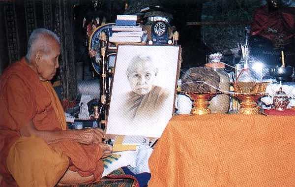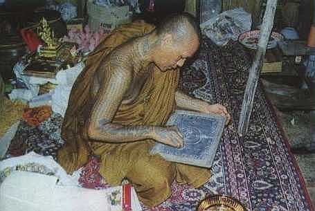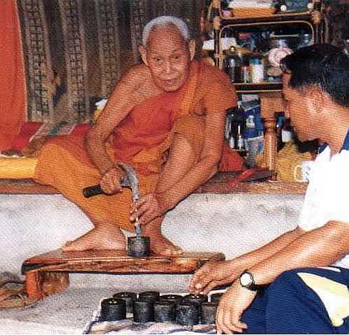 Luang Phor Liam chanting and consecrating the ingredients and materials to be used.