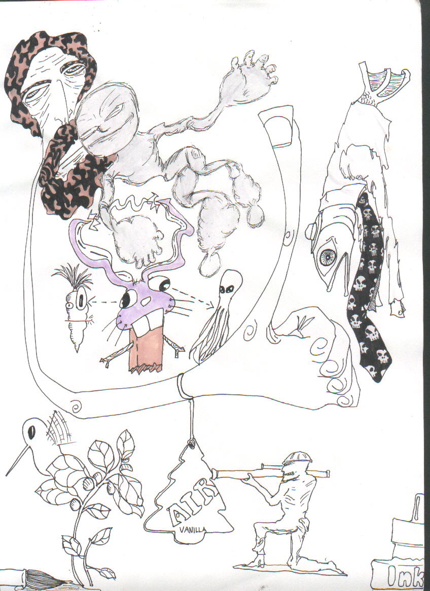 Lordy lordy, was I bored in Ohio. There were some good ideas in this, but not enough to warrant me coloring in the whole thing. I think by this time I stopped caring about what I was putting in the sketchbook, soon enough things would be picking up, (as in when I left Ohio) and I'd be back to producing quality work.